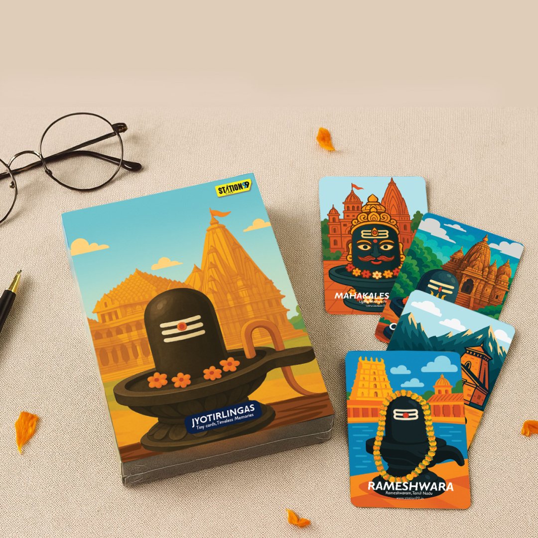 The Jyotirlingas Curiosity Flash Card deck is a gentle pilgrimage through the 12 sacred temples of Lord Shiva — spread across India, and rooted deep in the heart of every devotee.